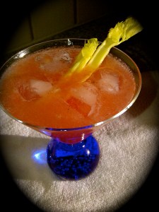 Dinner is served with the remaining wine – plenty to savour. Dessert is served with a Blueberry Tea – in a cup or large brandy glass, pour 1 1/4 oz. Grand Marnier and 1/2 oz. Amaretto. Add one slice of fresh orange – rind and all, and one cinnamon stick. Pour orange flavoured tea slowly over the cinnamon stick. I like to drink a bit and add more tea – keeping it warm and flavourful for a long lasting night cap!